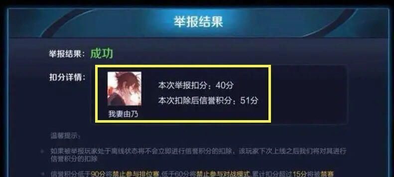 玩家只报告系统完全没有疏忽,直接提示扣40分,禁止进入资格赛和巅峰赛。然而,球员们觉得这还不够。虽然扣分了,但队员们在第二次报告中只扣了这么多分,扣分的原因可能是其他队友也报告了他,否则他们不会扣这么多分。然而,有了这样一个1-9的记录,估计任何看到它的人都会报告它