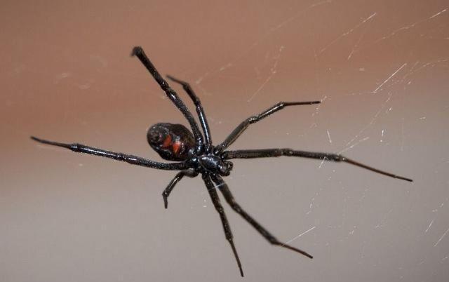 4,黑寡妇蜘蛛:黑寡妇蜘蛛可能是有毒蜘蛛中最著名的,它几乎遍布世界各地。雌性黑寡妇蜘蛛非常独特,雌性比雄性大一倍。它们的毒液比响尾蛇强15倍。这么毒是很可怕的。