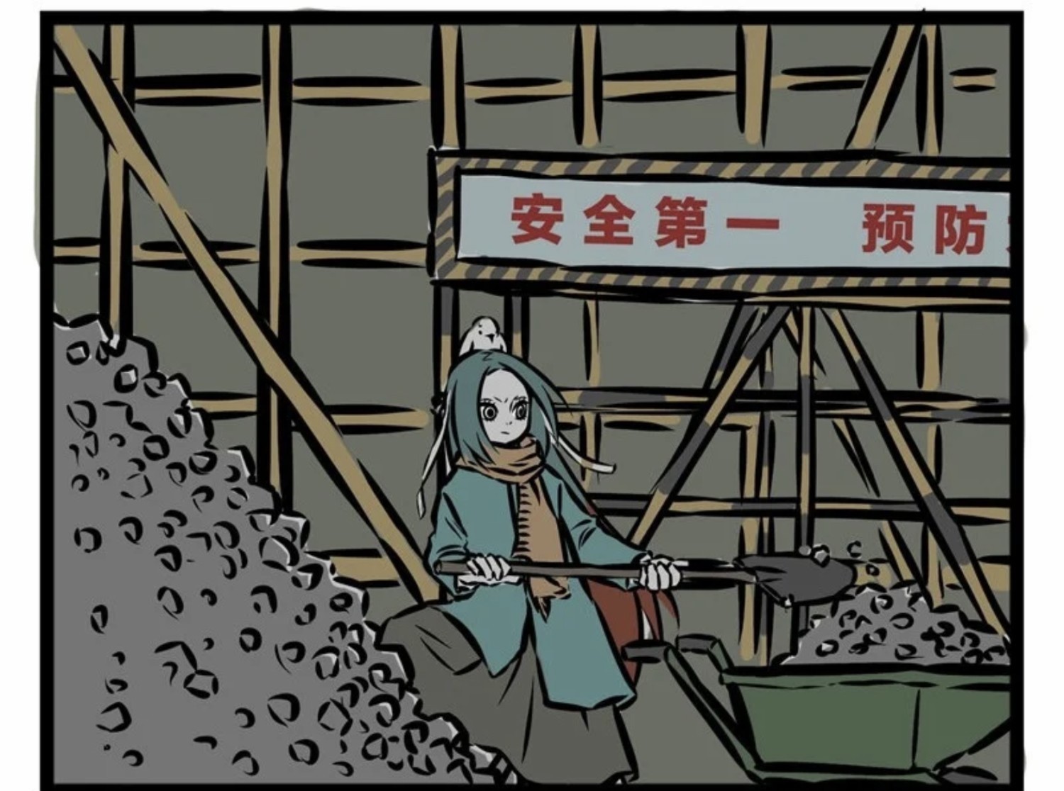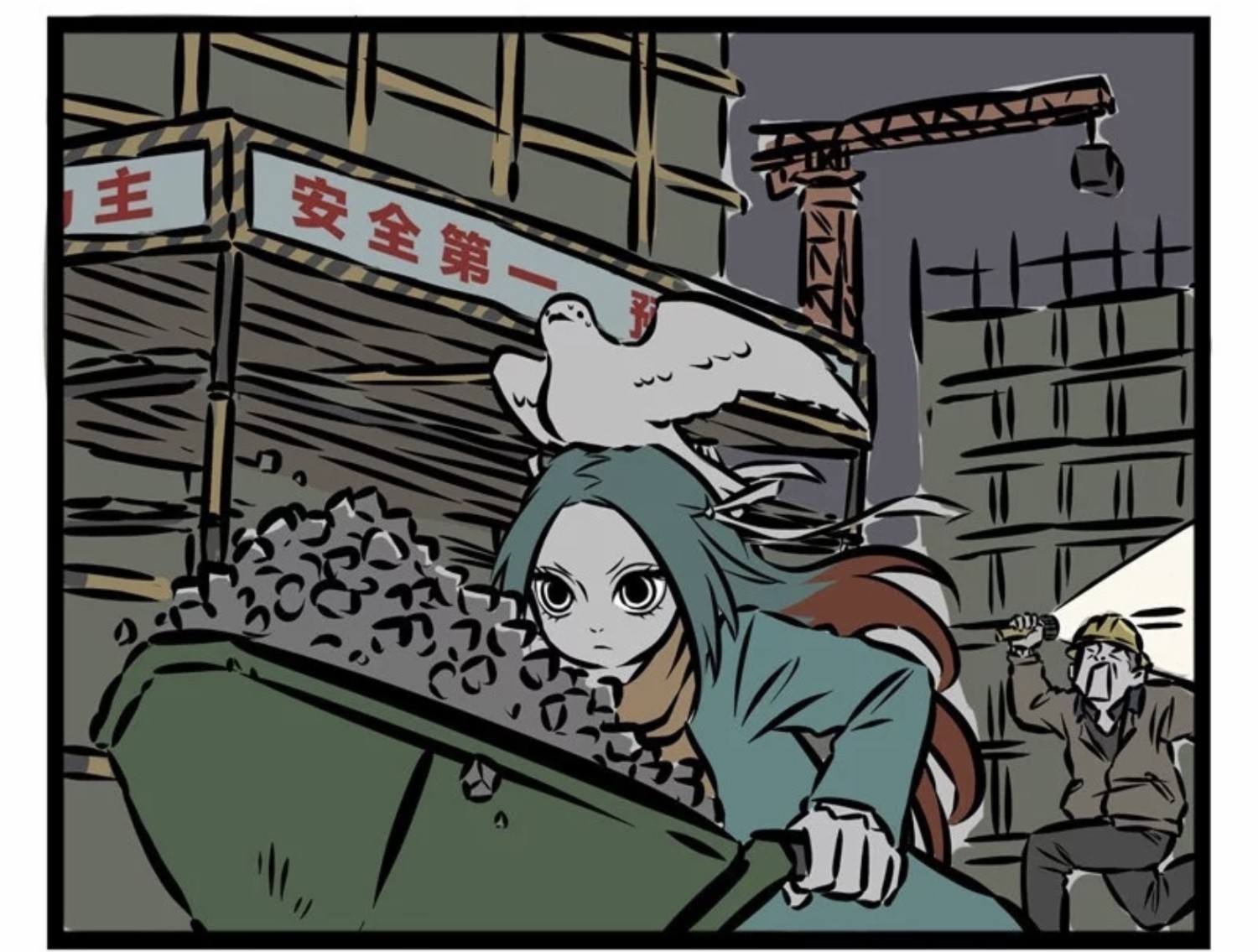 精卫拉了一车石头,但就在这个时候,她被警卫发现了然而,她没有停下来,而是推着车跑了。后面的警卫也在追看似“偷窃”的行为,却让别人觉得好笑看到精卫的眼睛,我不知道该说什么。
