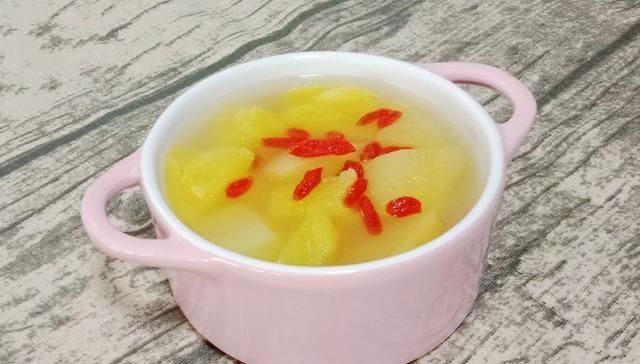 苹果、菠萝半、老冰糖两片、枸杞少许、精盐少许