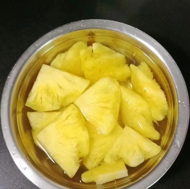 3的碎片。将菠萝片在盐水中浸泡20分钟