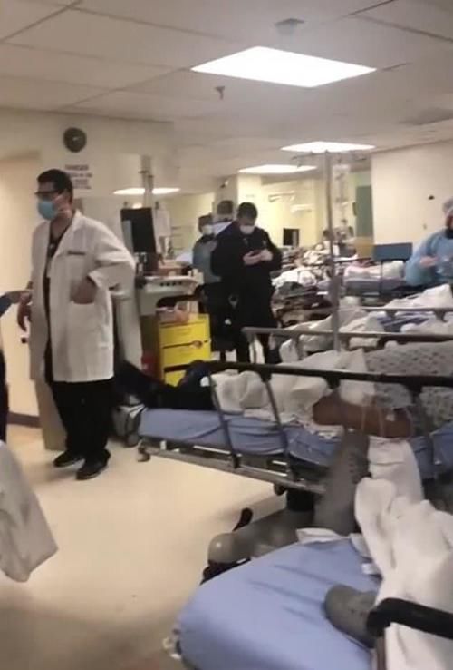 根据美国媒体3月27日的报道,令人震惊的视频显示,纽约的急诊室人满为患,一排排咯咯作响的床挤在一起。没有床的病人只能坐在椅子上。医生问:“谁是最重的病人?”