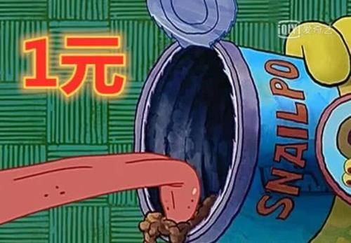 第一次看到海绵宝宝的宠物小蜗的食物。狗有狗食,猫有猫食。蜗牛也应该有蜗牛食物。蜗牛食物不贵,一个光头只需要一美元,这很便宜,否则海绵宝宝养不起小蜗。然而,小蜗的食物看起来很像狗粮和猫粮。它没有胃口。