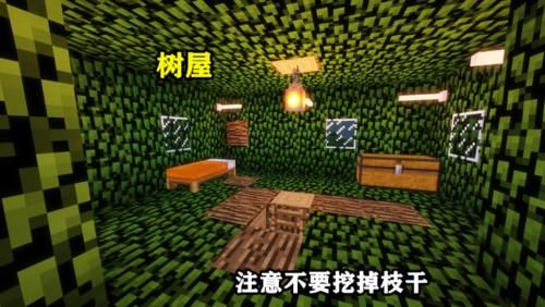 “先富起来再拉一棵树”是MC最初生存中的一句名言,这句话也从侧面证明了MC中确实有很多树。利用这个,我们可以建造一个简单的树屋。树中间的叶子被挖空了,外围可以用玻璃装饰。虽然内部空间不是很大,但是很温暖。梯子可以用来爬上爬下树屋。