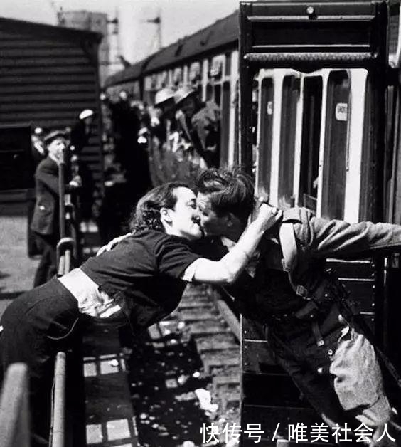 站台前,久别重逢的女孩挣扎着站起来亲吻她的爱人。