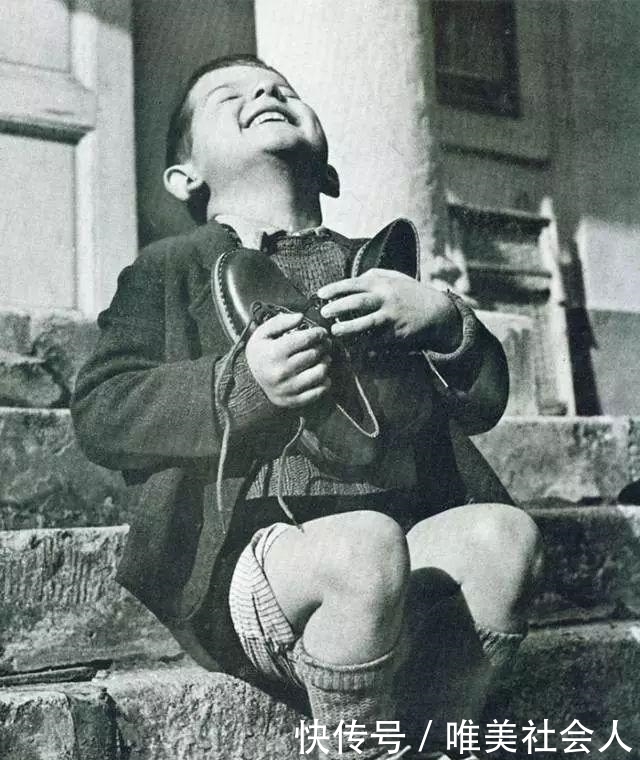 谢谢你,亲爱的在第二次世界大战中,第一次收到新鞋的小男孩对它们非常满意。他脚上的这双真的不能再穿了。