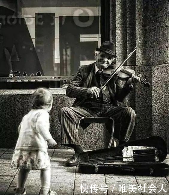 11,流浪街头,爷爷拉着小提琴,路过的孩子跟着音乐,开心地跳舞