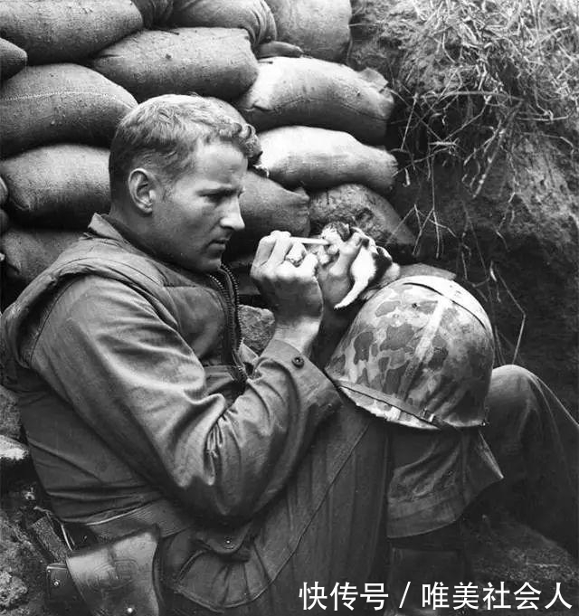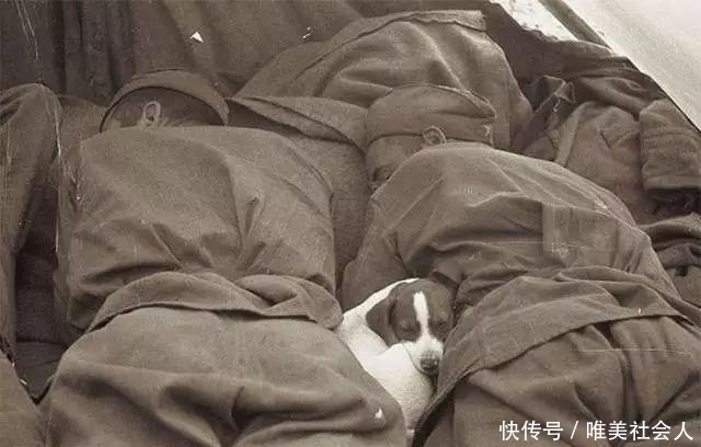 12年,在第二次世界大战的战场上,两名士兵守护着一只狗,平静地睡着了。