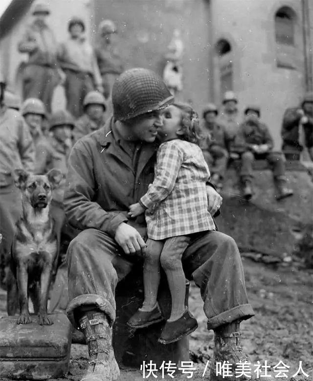 一切都有精神,爱无处不在在19916年和1945年的情人节,一个法国小女孩给了一名美国士兵一个温柔的吻。