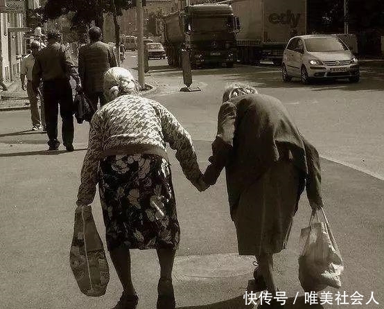14年,两个已经很老的老奶奶手拉着手,一步一步地慢慢向前走。