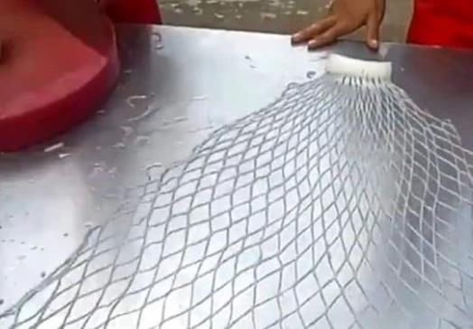 这么多中国厨师,面包片算不了什么,从图中可以看出,厨师把萝卜切成一张网,网里面并没有破,这头牛,每张网差不多大小,可以说是很厉害,虽然萝卜比较硬,切起来比较好,但是这种刀也是需要长时间练习的