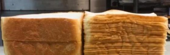 那么当成为一名厨师时,肯定有必要练习刀工,所以有些人拿面包来练习,我们都知道面包很软,如果刀工很难切好,一名米其林厨师平均切80片面包,从图中可以看出,厨师的刀工很好,每片面包的厚度也差不多。