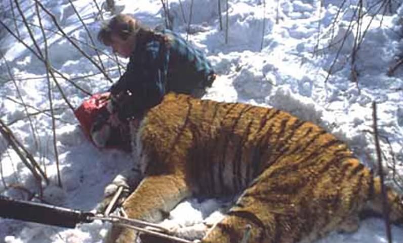 。值得一提的是,七只棕熊中有四只(三只成年母熊和一只两岁大的熊)被同一只成年雄虎杀死。老虎的编号是M20,它的名字是戴尔(由专家以远东老虎研究项目负责人戴尔的名字命名),它的重量是206公斤