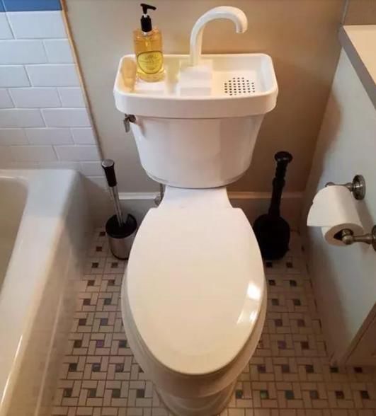甚至在马桶顶部有一个水槽。这种设计理念真正充分利用了每一寸空间。如果我们有这些技能,估计我们就不会再抱怨空间太小了。如果我们设计得好,我们甚至可以很好地利用共享区域(我真的是个聪明人)