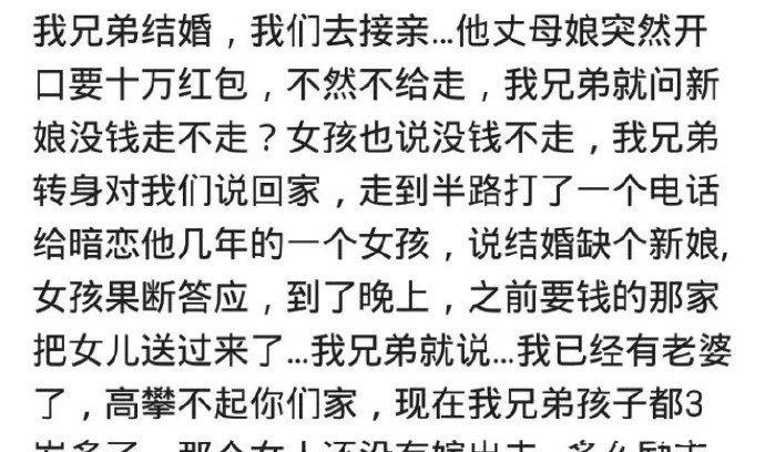 实际上是在现实生活中,因为彩礼问题和男朋友分手的女孩不在少数一些女孩认为对方一定不能嫁给自己,所以她们拼命地压榨对方。事实上,边肖认为真正相爱的人根本不在乎钱。对于下面这个因为10万元而耽误了幸福的女孩来说,边肖真的不值得。你怎么想呢?