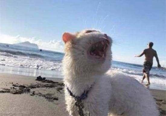 无法无天的它在家里,触摸到冰冷的海水后,竟然吓到了灵魂在这无边无际的大海和沙滩上,但是猫一生中从未见过如此大的场面。猫:为什么这个垃圾箱这么大?水多冷啊!走,走,走!