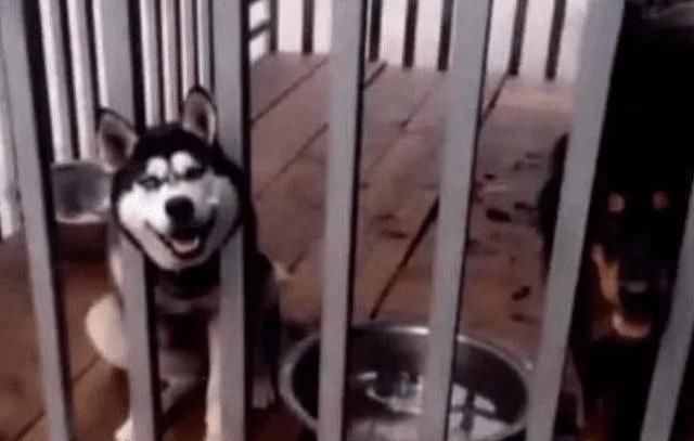 看到主人的朋友来了,哈尔看起来像找到了一个救世主。对他的朋友,他喊道:“主人!”赶紧让我出去,这两个大家伙真的被打败了!为了生存,我的狗的头整晚都被卡在笼子外面。请快点帮我!