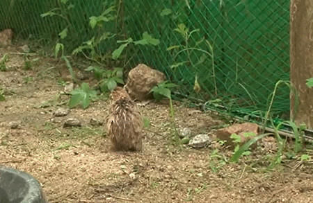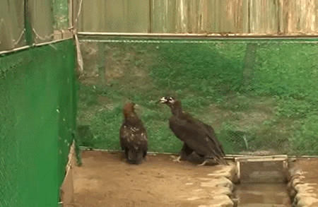 思考了一下,饲养员认为金雕可能已经呆了8年,可能已经忘记了狩猎技能,所以他们为金雕找到了另一个老师:猫头鹰!一只小鹌鹑掉了下来。猫头鹰老师棒极了。他跳起来,用jio完成了这件事