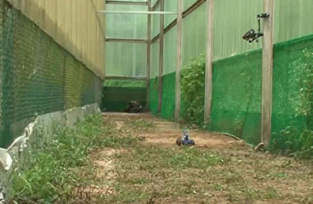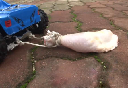 所以饲养员做出了让步。如果生物失败了,用一只大鸡腿代替它,并把它绑在遥控车上来模拟生物。