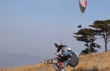 为了进一步刺激金雕的欲望和飞翔能力,叔叔带着滑翔伞和金雕一起起飞了!