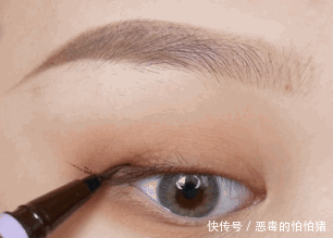 深棕色眼影用于加强第三只眼尾,过渡眼影眼线有点晕。