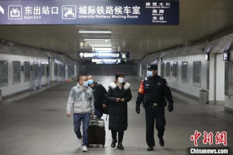 (抗击新皇冠肺炎)武汉铁路开放出口通道首批乘客抵达武昌火车站