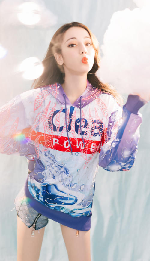 一双相配的拼接连帽鞋简洁明快,尤其是衣服上的亮片设计,体现了脖子的比例。长长的设计搭配浅蓝色修身超级短裤,包裹修长的双腿,让衣服消失不见。它在视觉上延长了腿部的比例,让个性充满活力。