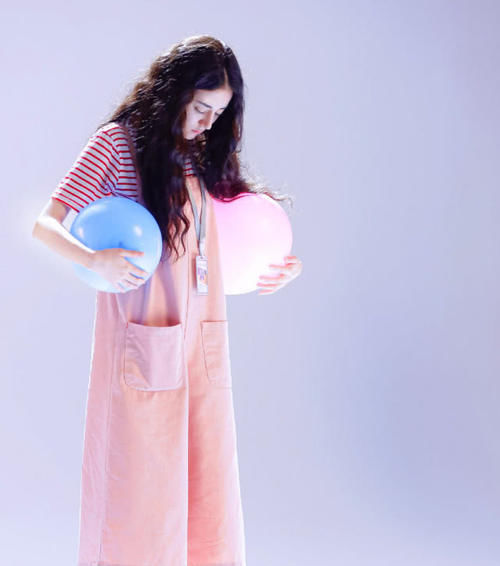 披肩的波浪卷发有着自己的性感魅力,穿着粉色针织夹克,圆领从修长的脖子上凸出,背部绣有蝴蝶图案,精致高档搭配深紫色半长薄纱裙,勾勒出纤细的腰身。它轻便休闲,非常适合日常穿着。