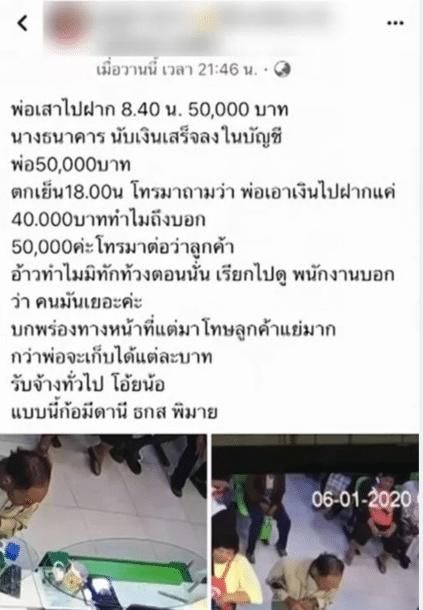 受害者的女儿说:“我父亲在2020年1月6日上午8点40分将5万泰铢存入他的账户这名女性银行职员清点了钱,并确认库存中有50,000泰铢。下午6点,银行分行经理打电话告诉我父亲,他的存款只有4万泰铢。我开始奇怪为什么一开始他被告知他有50,000泰铢,而经理坚持说是40,000泰铢。我父亲错了。“