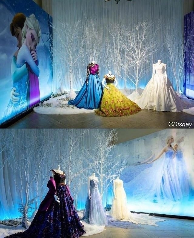 在服装设计方面,艾莎的裙子借鉴了冰岛的服装风格,而安娜则更具挪威风格。可以看出,制作团队花了很大的努力,这件婚纱也很漂亮!