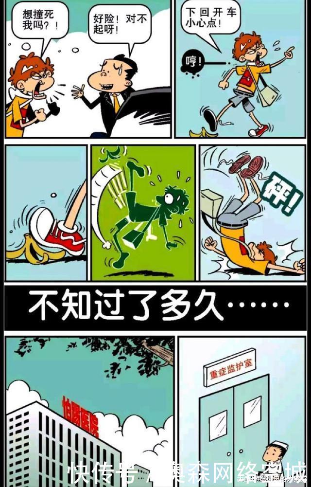 一个帅倒在香蕉皮上晕倒了。当阿帅醒来时,他已经在医院了他看着他们旁边的人,哭着对他说,他已经困惑了三天。< p>