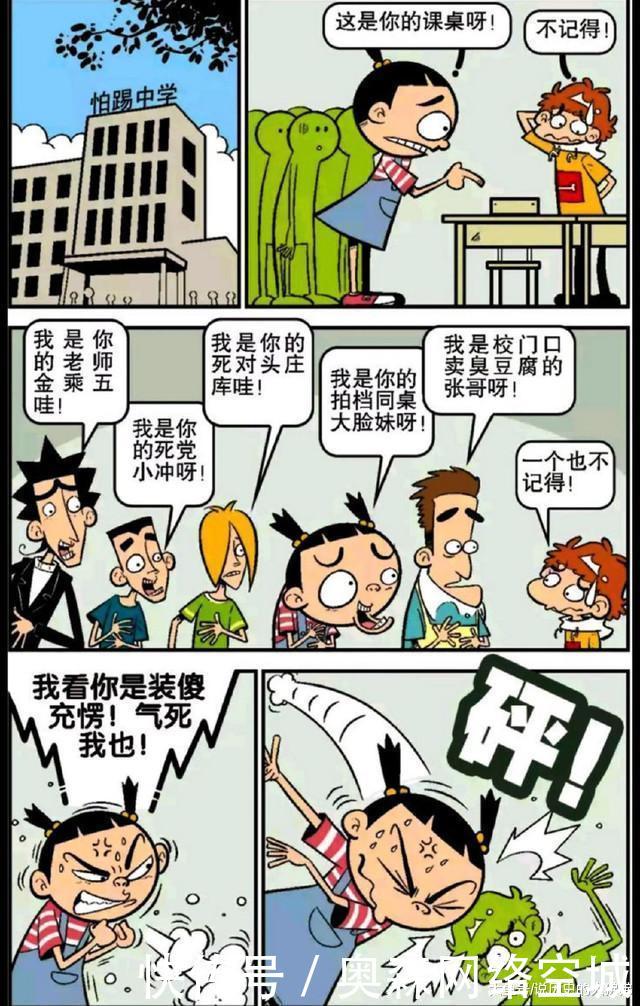 大脸妹妹生气了,以为阿帅在假装失忆,于是她用她无敌的铁头力量狠狠地打了阿帅的头。结果,阿帅突然说,他想起来了阿水认为他是一个学习成绩优秀的好学生,而大姐大是一个差生。< p>