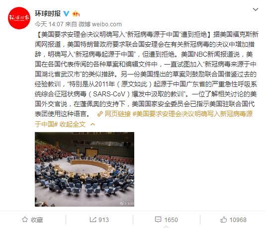 3月27日现场直播——据福克斯新闻网报道,美国特朗普政府要求联合国安理会在有关新冠状病毒的决议中增加措辞,明确表示“新冠状病毒源于中国”,但遭到拒绝。