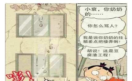 只听到一声巨响。奶奶的重量直接打破了墙壁,裂缝蔓延到三楼和四楼的教室。阿什和大脸惊讶地看着底部。小衰啊,你奶奶的,衰听见大脸姐姐这么说,很不是滋味,你怎么骂人了!大脸姐姐回答说,我只想说,你奶奶的箱子差点把整栋楼都撞倒了,阿帅不满地说,别胡说八道,我奶奶的发明一定很有用!这座大楼一定是豆腐渣工程!