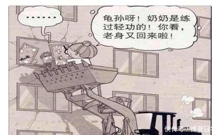后来,奶奶爬楼梯的方式变得越来越奇特了。例如这一天,奶奶穿着铁人的装备飞了过来,大喊:"龟孙,奶奶来看你了,比如这一天,奶奶在筋斗云上飞了起来,大脸妹妹和阿帅被迫观看。"