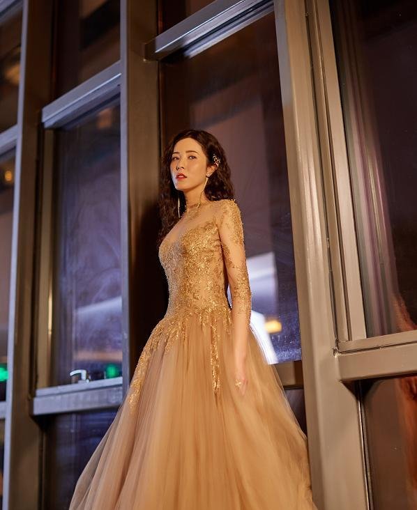 黄金屑似乎覆盖了一大片区域,但没有想象中的累赘。这得益于纤细的线条和金粉的层次感,这正好符合人体的自然曲线。就连手臂都是散乱的被褥。白皙的皮肤暴露得恰到好处,减少了元素的层次感,减少了许多亮色的丰富效果。此外,原本身高170厘米的她正驾驶着这样一款裙装,将女性的魅力和性感发挥到了极致。它充满了灵气。< p>