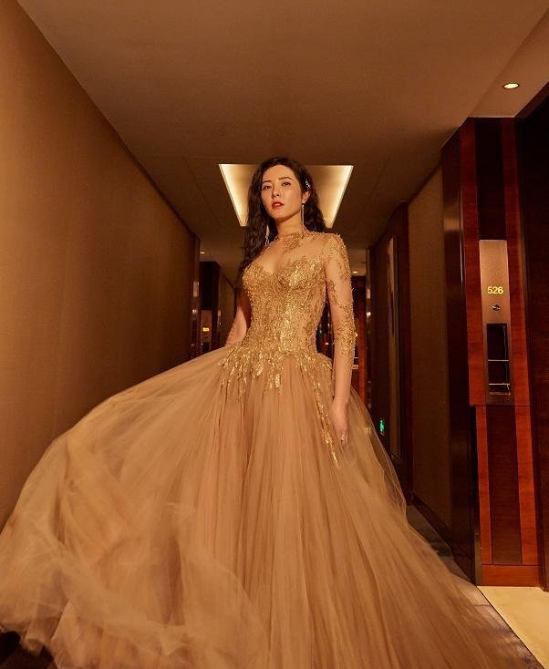 有一条用纱布元素装饰的裙子,可以优雅、高贵、性感、大气。它可以根据装饰的不同部位呈现不同的造型感受。像这个版本的曾黎的身体一样,上半身是一种质地略带透明的织物,也是一种纱布。它只使用透视细节来创造一个性感的版本。然而,通过黄金元素的装饰,肩部和颈部线条在关键位置被恰当地暴露出来,既不太单调,也不太性感和粗俗,而是有一种挑逗俏皮的感觉。< p>