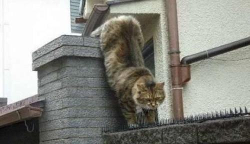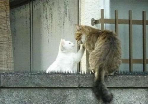 猫刺垫是一种塑料产品。虽然它不会真的伤害猫,但会让它们感到不舒服。一般来说,猫互相接触后会立即离开,而且根本不愿意踩在上面。但是猫清楚地看到了猫的刺垫,但还是勇敢地走了上来