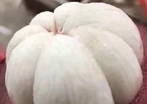 2,这更有趣,乍一看,我相信99%的人会看到大蒜。它看起来很像大蒜,它的白色果肉几乎和大蒜的颜色一样。这种水果味道脆,不太甜。也可以用来炒肉吃哦