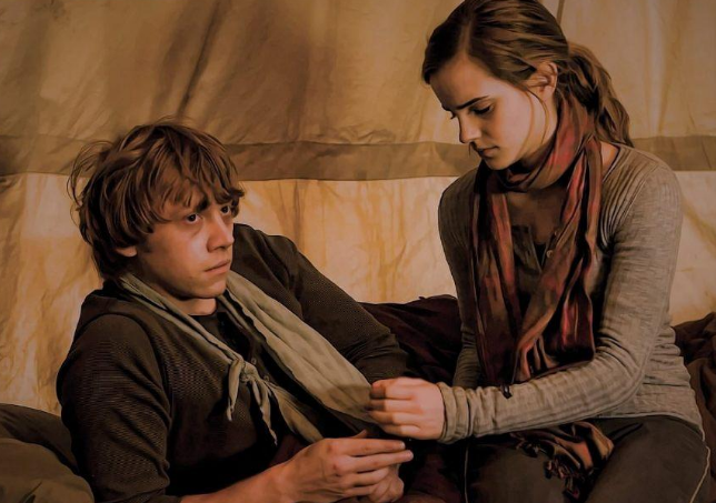 ,如上图所示,罗恩喜欢赫敏,但看起来赫敏在拥抱哈利后刚刚和罗恩握了手问题又回到了为什么赫敏选择了罗恩而不是哈利。显然,罗恩非常喜欢赫敏在《哈利·波特与密室》中,罗恩用一根断了的魔杖以光速诅咒了马尔福,当时拖哥被赫敏嘲笑并责骂她是个泥巴种。其次,从性格的角度来看,赫敏是坚强的一面,而罗恩觉得有点不知所措(在电影中),这种力量和弱点的结合也符合现实生活中的伴侣的感觉。与此同时,赫敏在四年级提出了一个小型权利促进和保护协会的概念。在第七次霍格沃茨战争中,罗恩第一个想到释放厨房里所有的小家伙。他记得赫敏想做什么。作为一个像小天狼星一样正派的巫师,他仍然按照传统奴役年轻人。罗恩来自一个巫师家庭,他对奴役有着深刻的理解,但是作为一个为他心爱的女人服务的男人,他可以放下他根深蒂固的想法去满足她,为她改变。这也是相对的。在魁地奇比赛中,罗恩为格兰芬多守门,但他担心自己做得不好。赫敏,一个非常有原则的女孩,秘密地使用干扰咒语来帮助罗恩保持门开着(后来被哈利发现了,并且讽刺地)就像一个人可以为他改变一样,这是世界上最浪漫的事情