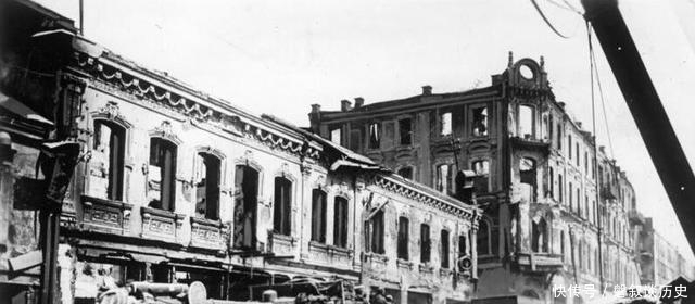 ■1941年6月,德国军队进入明斯克,显示道路两侧的建筑被德国空袭摧毁