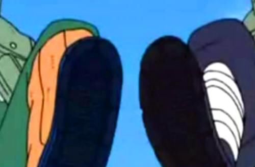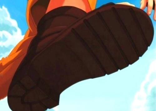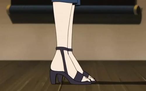 对于上图中的忍者脚,从高跟鞋上不难看出它的主人是女忍者。然而,尽管这个忍者的脚很漂亮,但它的主人并不年轻,至少有50多岁了。这只脚的动作是,在自来也死后,它的主人站在原地哭泣。虽然她脚上什么也没有,但她已经哭哭啼啼,瘫倒在墙角。