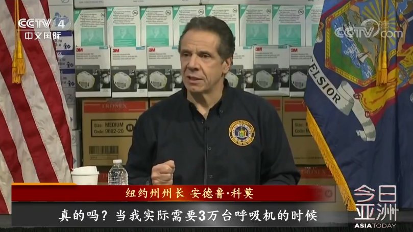 3月19日,纽约州州长安德鲁·科莫表示,该州没有足够的呼吸机来应对未来45天内新一轮冠状肺炎爆发带来的患者激增。目前,纽约只有3000张装有呼吸机的重症监护室病床