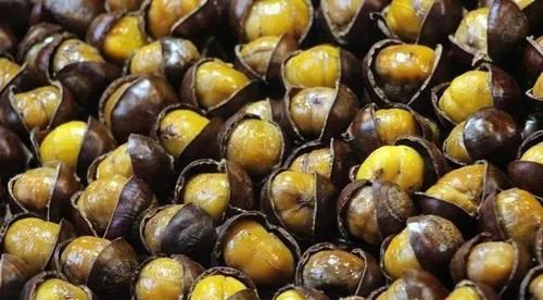 糖炒栗子:在冬天,热糖炒栗子也很受人们的欢迎,栗子的营养价值也很高。栗子富含维生素和多种微量物质,有很好的养胃作用。