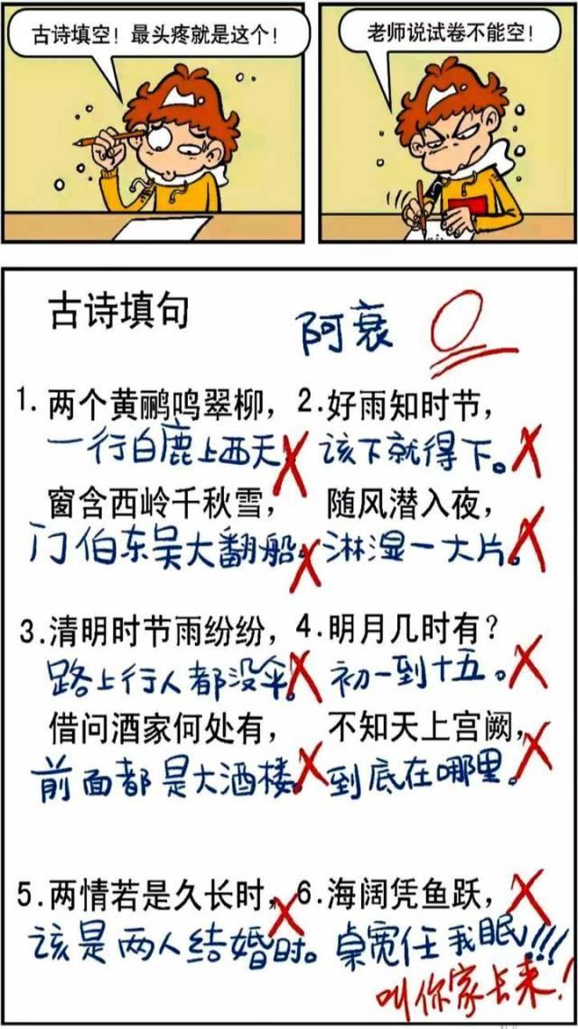 阿水填古诗词。为了不交白皮书,他大发脾气。最后,父母被直接召唤,古诗变成了白话。