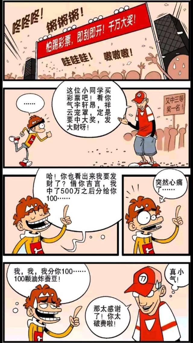 阿水跑去买彩票。那里的工作人员说他被祥云笼罩,会赚很多钱。阿什说,如果他赢了,他将有100个油炸蚕豆。
