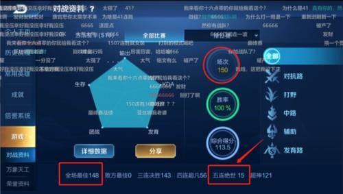 除了参加巅峰对决,他最近又开始了他的整个人生。他利用韩信每天在广播中赢得一个单排,现在已经成功地赢得了150场连胜!让我们看看这些数字。五角大楼爆满,150场比赛100%获胜,赢得了148个最有价值球员,其中只有两个错过了最有价值球员。不仅如此,计然还赢得了15次五次枪击。许多人打了成千上万场国王比赛。五次枪击的次数不一定超过10次。这个记录太强了。