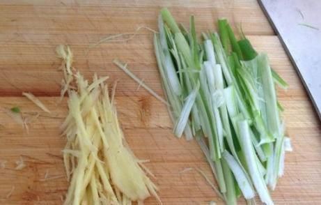 第二步,将剩余的姜切成丝,然后将姜片填入鱼的腹部和之前切好的部分,然后在姜片上倒一勺料酒,用手小心地将姜片涂抹均匀,然后静置腌制一会儿,腌制过程中准备好洋葱丝;