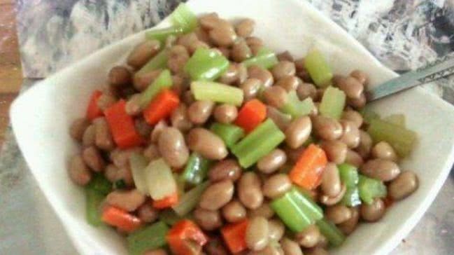 第五步:取出花生,在空气中冷却,放入装有芹菜的容器中,加入少许芝麻油和盐,搅拌均匀,即可食用。建议