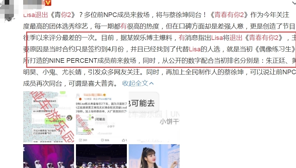 之前,有网友透露,丽莎的合同将于4月到期,因此她将退出《青春2》,蔡的前队友将代替丽莎进行紧急救援。这个消息让很多粉丝非常难过,毕竟很多人都在看着丽莎!